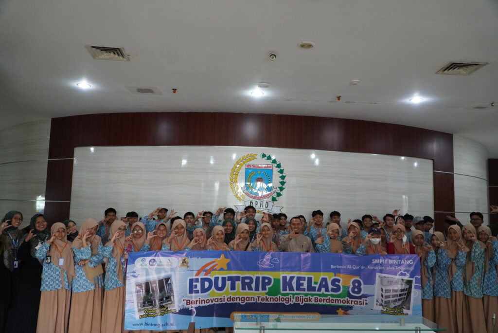 TANGSEL — Wakil Ketua DPRD Kota Tangerang Selatan, H.M. Yusuf, Lc menerima kunjungan siswa kelas 8 SMPIT Bintang, Serpong Utara, pada Rabu (19/11). Rombongan pelajar disambut langsung di Ruang Aspirasi DPRD Tangsel.